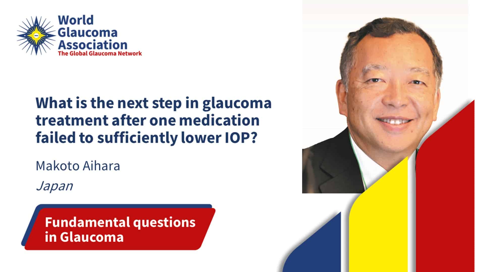 What is the next step in glaucoma treatment after one medication failed to sufficiently lower IOP? | Makoto Aihara