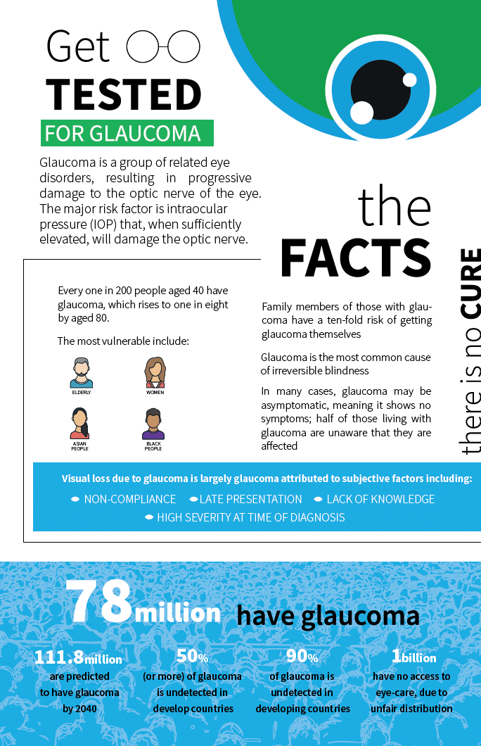 It is estimated that around 80 million people have glaucoma worldwide. Approximately 50% of the individuals with glaucoma are unaware that they have the disease, and this number may be even higher in underdeveloped countries. This is because in its early stages, glaucoma is asymptomatic. If untreated, glaucoma may progress to blindness.